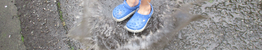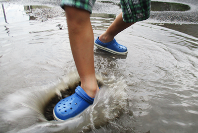 • 水たまりをザブザブ歩いたり、ジャンプして水しぶきが上がるのを楽しむ