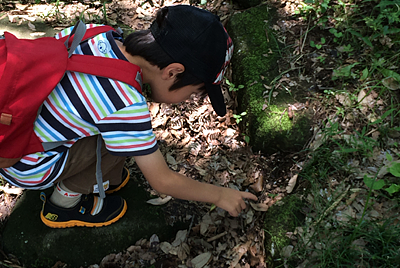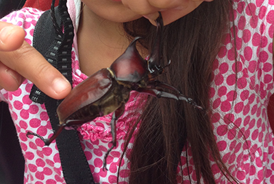 自然の中の匂い、虫の鳴き声や飛ぶ音、虫を探し出す目、木や草や虫を触ったときの感触、林の中を歩く感覚など、五感をフルに使って脳を刺激します。