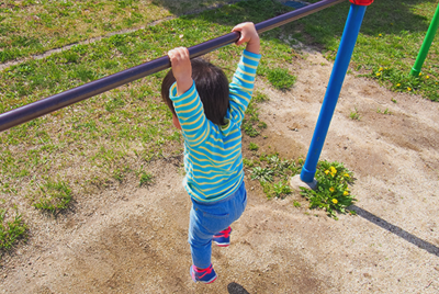 鉄棒は公園、園庭、校庭などに設置されている遊具で、ぶらさがったり、体を回転させて遊びます。バランス感覚を伴う高い身体能力を必要とする遊びのため、幼児期の子どもは親と一緒に練習しながらステップアップしていきましょう。ハードルを一つずつクリアするたびに味わう達成感は、体力とともに精神力を大きく成長させます。
