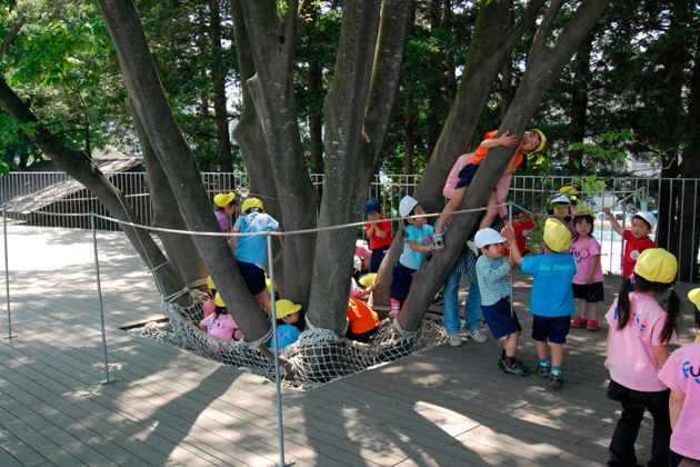 由比:ふじようちえんにも最初は遊具をつけようという話があったのですが、園長先生や私達のそういう考え方もあって、最終的には「いらないんじゃない」ってことになりました。結果的に、遊具がなくてとてもよかったです。子どもたちは自分で考えながら、いろんな遊び方を創り出すんですから。