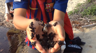 貴晴:気が付いたら、娘が穴を掘ってるんですよ。ヤドカリみたいにドンドン掘っていく、素手で。放っておくと、ホントにおもしろい。そうそう、毎年、屋久島にウミガメのボランティアに行くんですよ。